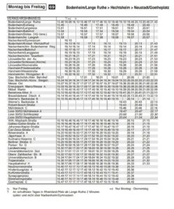 Innerhalb der Verbandsgemeinde Bodenheim fährt die Linie 69 als Rundlinie. Die Rundlinie verbindet alle Orte der Verbandsgemeinde jeweils stündlich mit Fahrten „im Uhrzeigersinn“ sowie ebenfalls stündlich „gegen den Uhrzeigersinn“.